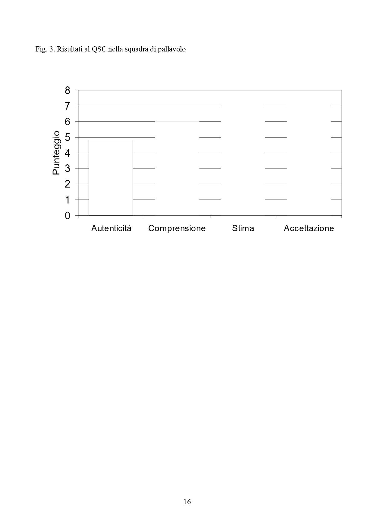 Il terzo questionario, infine, è uno strumento finalizzato a studiare il clima all’interno della squadra:“Il Clima di Squadra” (QSC) (Gruère e Stern, 1981). Il questionario è composto da 16 item relativi ai comportamenti della squadra verso il singolo giocatore e agli atleti si chiedeva di valutare la frequenza di questi comportamenti nei loro confronti. Per ogni item sono previste sei possibilità di scelta: mai, molto raramente, a volte, di solito, di frequente, sistematicamente. Gli atleti dovevano esprimere un giudizio sulla loro squadra e attraverso le risposte si sono ottenute delle misure su quattro dimensioni relative al clima di squadra: l’autenticità (es. “…mi sostiene in modo autentico”), la comprensione (es. “...percepisce bene il tipo di persona che sono”), la stima (es. “…ha interesse per me”), l’accettazione (es. “…mi accetta come sono”).