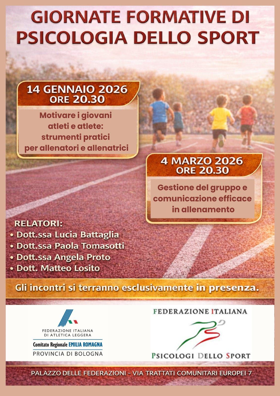In questo ambito, la Dott.ssa Angela Proto opera come professionista qualificata ed è socia della Federazione Italiana Psicologi dello Sport nonché Presidente del Comitato Psicologi dello Sport Emilia Romagna, ruoli che testimoniano un impegno costante nella promozione, nello sviluppo e nell’applicazione della psicologia dello sport a livello professionale e territoriale.